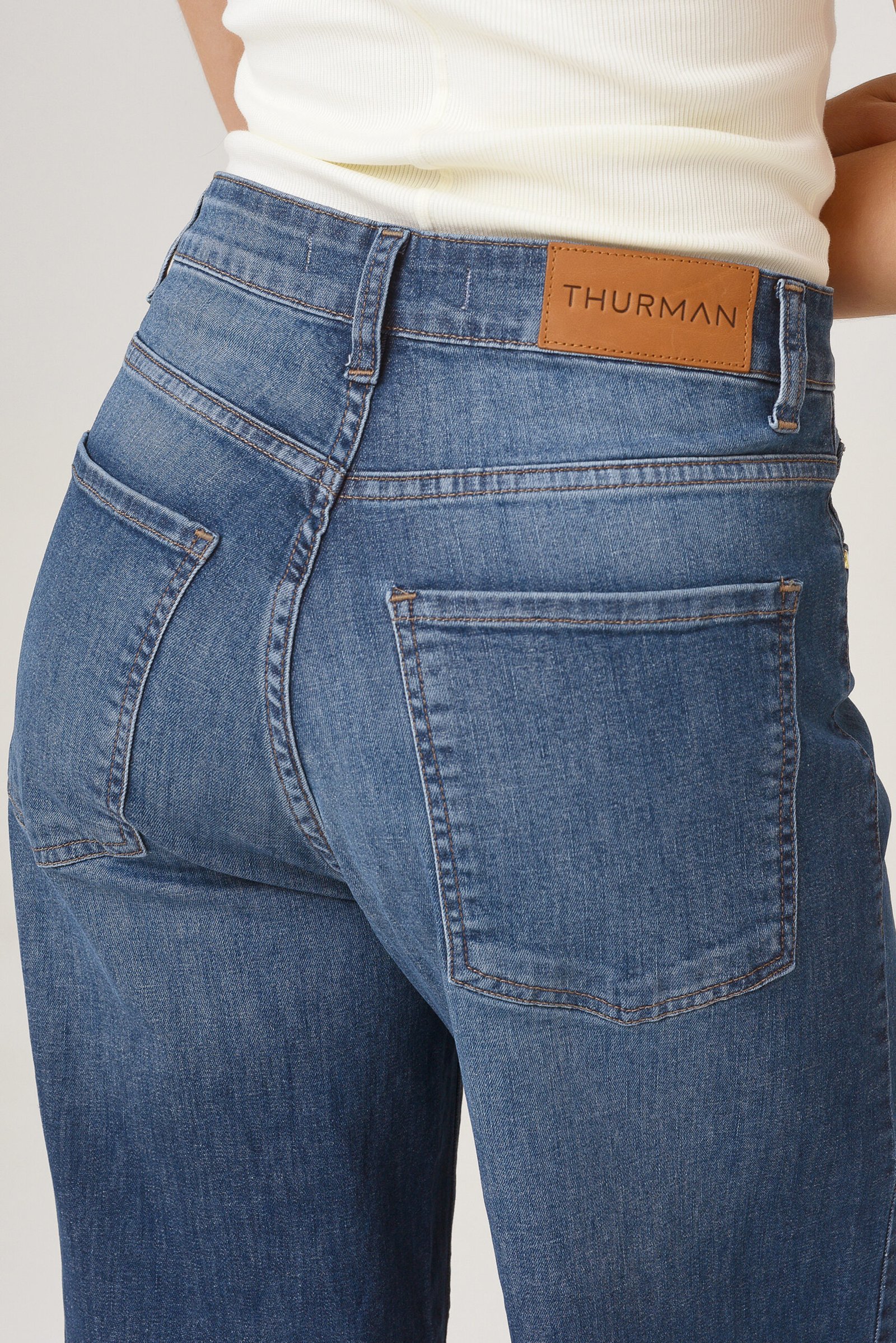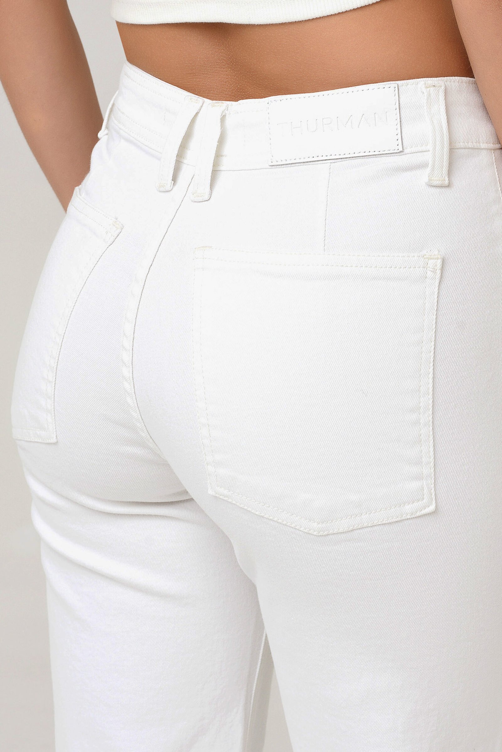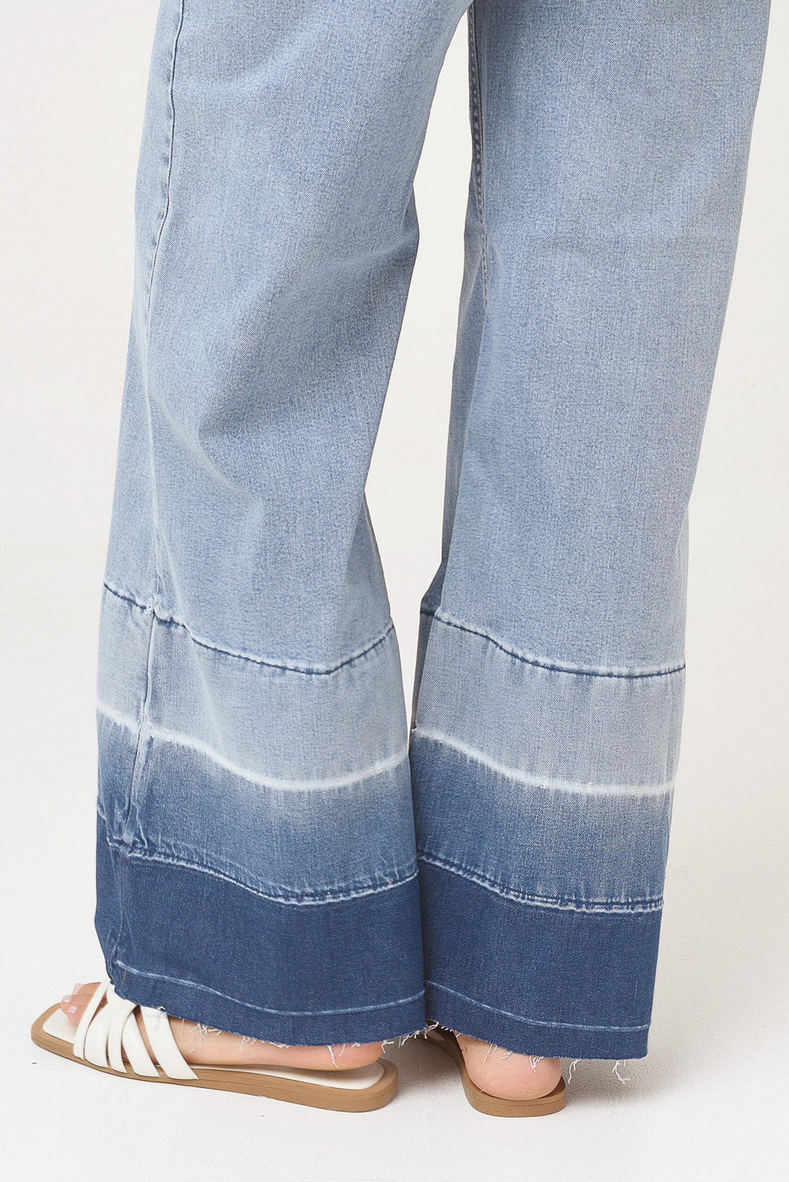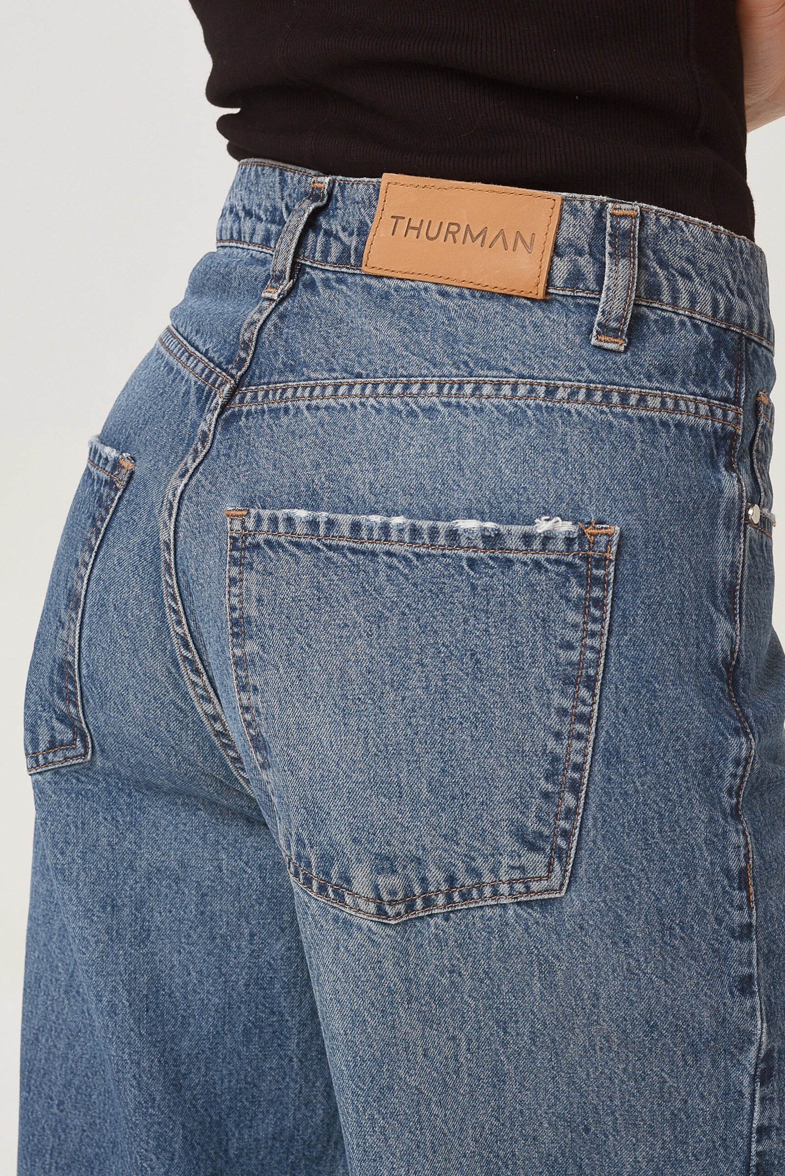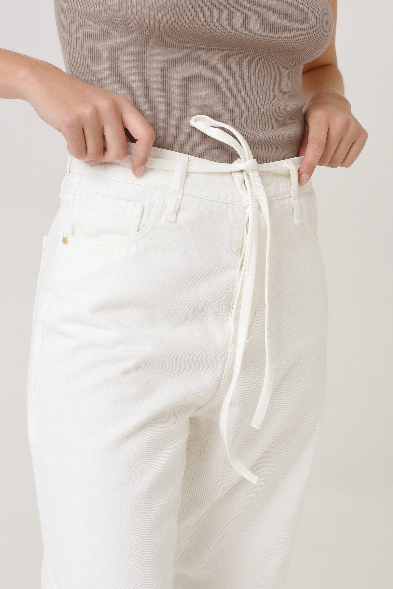 Tiro alto, ajuste en cintura, cadera y muslos. Pierna ancha de muslo a botamanga.