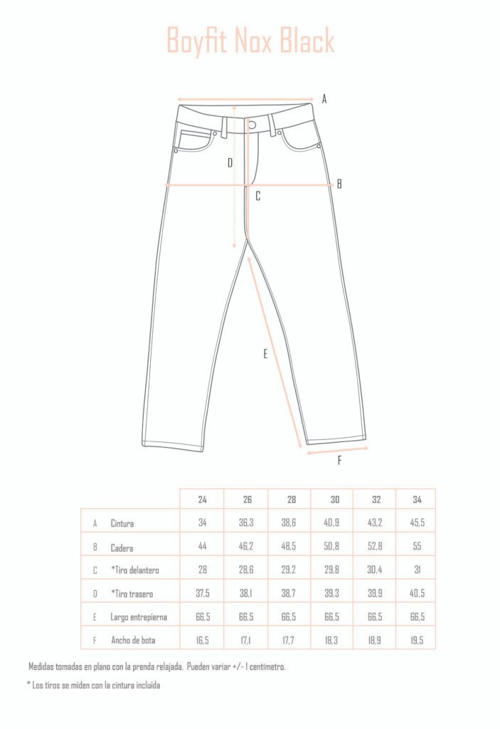 NOX BLACK es un jean 5 bolsillos, de tiro medio, ajustado en cadera y muslos, con sutil holgura en piernas.