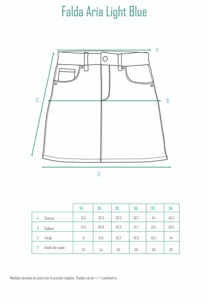 ARIA, es una falda 5 bolsillos, de tiro intermedio, ajustado en cintura y levemente en cadera.
