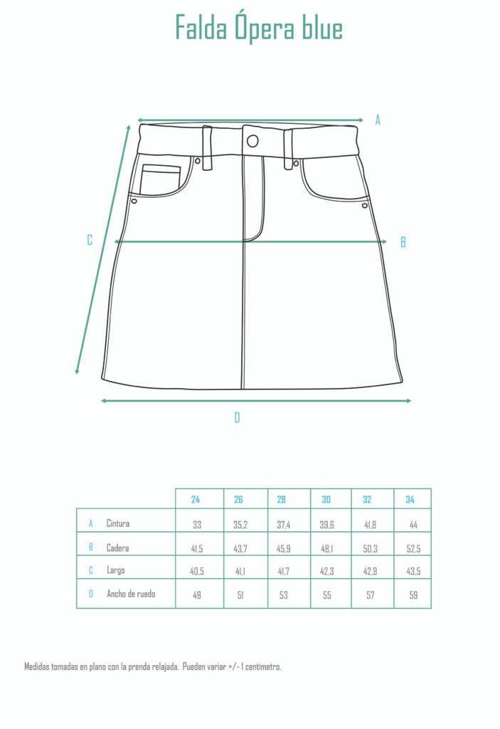 OPERA, es una falda 5 bolsillos, de tiro intermedio, ajustado en cintura y levemente en cadera.