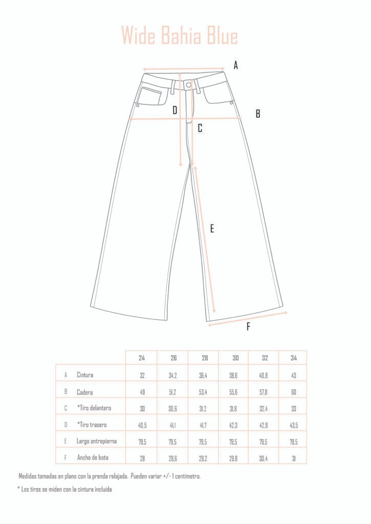 Su pierna es ancha de muslo a bota y su largo es full. Su ruedo es convencional.