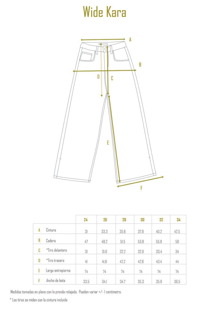 Su pierna es ancha de muslo a bota, tiene detalle de recorte en laterales que finalizan en un tajo en la botamanga. Su largo es full y su ruedo es convencional.